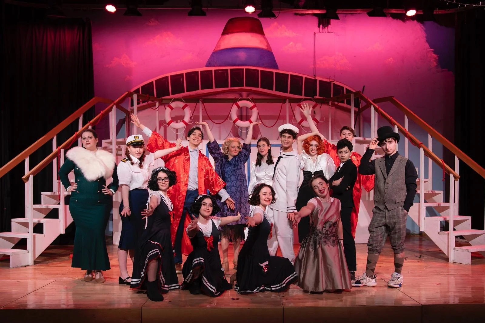 Anything Goes is set in the 1930s, during the Golden Age of Ocean Liners, aboard the luxurious S.S. American, a ship traveling from New York to London. This period was marked by economic struggles due to the Great Depression, but the opulence and glamour of ocean travel offered an escape from reality. The story unfolds against this backdrop of high society, featuring a mix of wealthy passengers, Broadway stars, gangsters, and stowaways, all wrapped in the carefree, jazzy atmosphere of the era. The setting reflects the charm and escapism of the time, with lavish costumes, lively dance numbers, and a sense of adventure on the high seas.